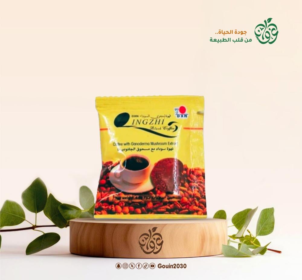 ظرف قهوة سوداء مع مسحوق الجانوديرما
